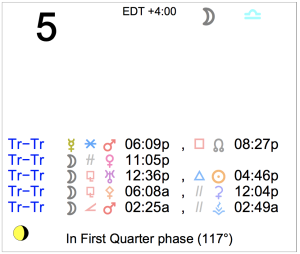 Today's Moon: The Moon is in Libra. There is no void Moon period today. The Moon is waxing and in its First Quarter phase. The First Quarter Moon occurred on the 2nd. Retrogrades: … [Read more...]