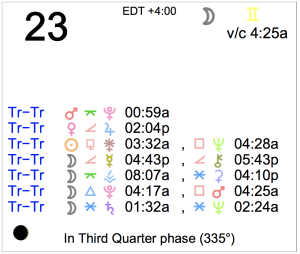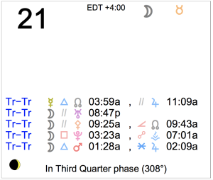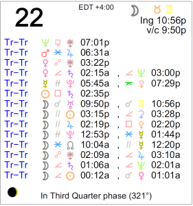 Today's Moon: The Moon is in Taurus. There is no void Moon period today. The Moon is waning and in its Last Quarter phase. The Last Quarter Moon occurred on the 18th. Retrogrades: … [Read more...]