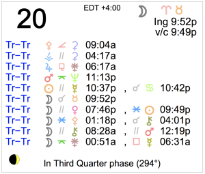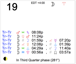 Today's Moon: The Moon is in Aries. There's no void Moon period today. The Moon is waning and in its Last Quarter phase. The Last Quarter Moon occurred yesterday. Retrogrades: … [Read more...]