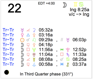 Today's Moon: The Moon is in Gemini until 8:25 AM, from which time the Moon is in Cancer. A void Moon period continues until 8:25 AM today (since yesterday at 3:51 PM). The Moon is waning … [Read more...]