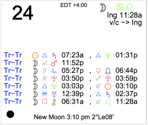 Today's Moon: The Moon is in Leo. There is no void Moon period today. The Moon is waxing and in its New phase. The New Moon occurred yesterday in the sign of Leo. Retrogrades: … [Read more...]