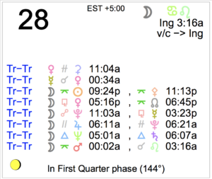 Explore the astrology of the day with zodiac sign horoscopes, daily transits, Moon phases, and planetary signs and aspects. Today's Moon: The Moon is in Cancer until 3:16 AM, when it … [Read more...]