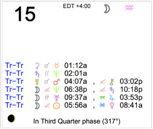Explore the astrology of the day with zodiac sign horoscopes, daily transits, Moon phases, and planetary signs and aspects. Today's Moon: The Moon is in Aquarius until 7:15 PM, after which … [Read more...]