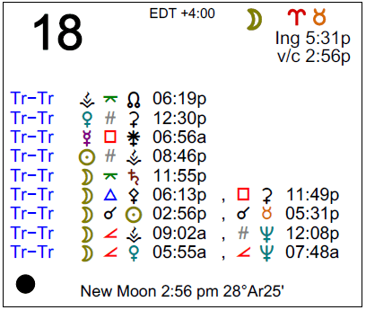 - A New Moon occurs in the sign of Aries at 2:56 PM.
