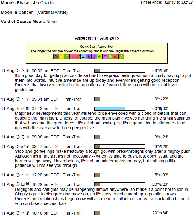 - The Moon is in Cancer all day (until tomorrow, August 12th, at 4:52 PM).