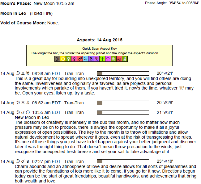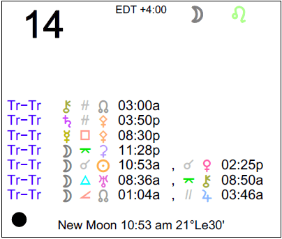 The following aspects (major only) and positions are at noon (EDT) on August 14th: