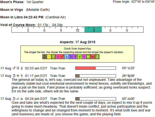 The following aspects (major only) and positions are at noon (EDT) on August 17th: