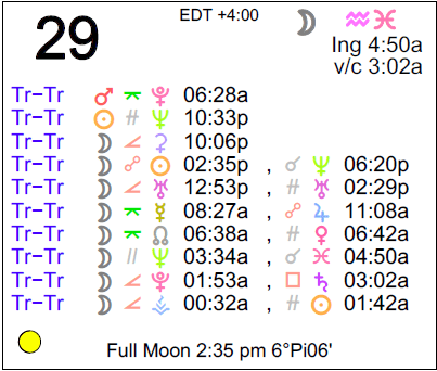- A Full Moon occurs today at 2:35 PM, in Pisces.
