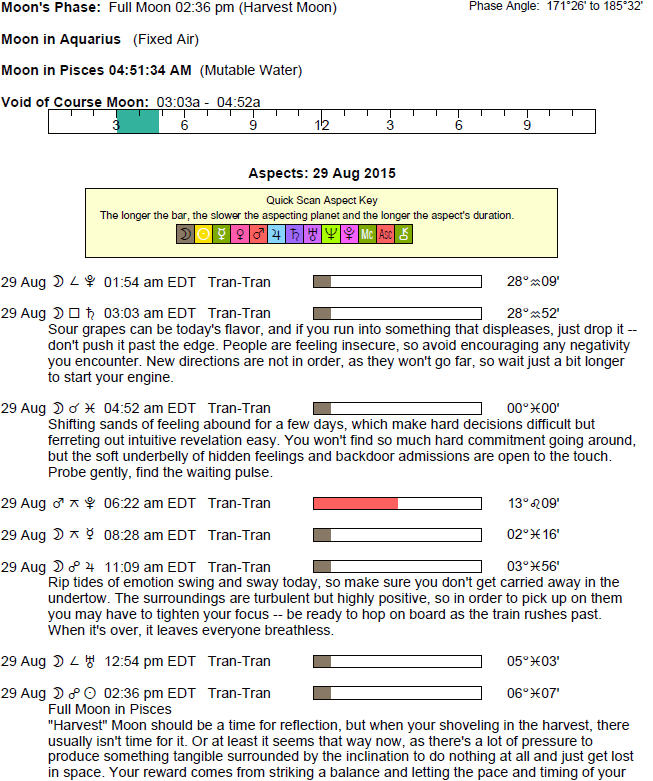 - The Moon is in Pisces from 4:50 AM forward (until Monday, August 31, 2015, at 4:33 AM).