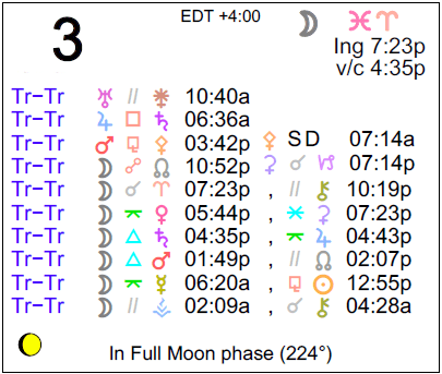 - The Moon is in Aries from 7:23 PM forward (until the Moon enters Taurus on Wednesday, August 5th, at 9:29 PM).
