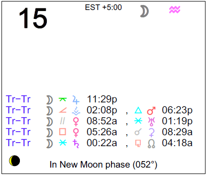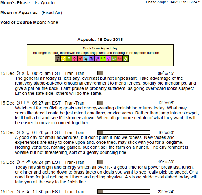 The following aspects (major only) and positions are at noon (EST) on December 15th: