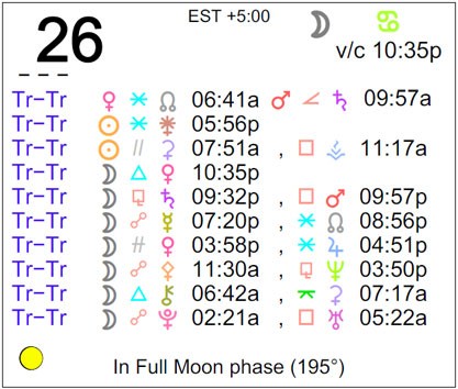 If you’re astrologically inclined and interested in the details of the Astrology of today, here are some of the factors considered in the forecasts (for the astrology of the week, see This Week in Astrology):