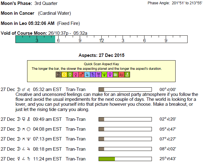 The following aspects (major only) and positions are at noon (EST) on December 27th: