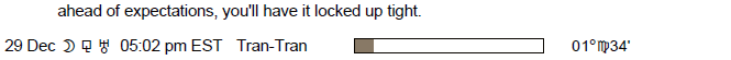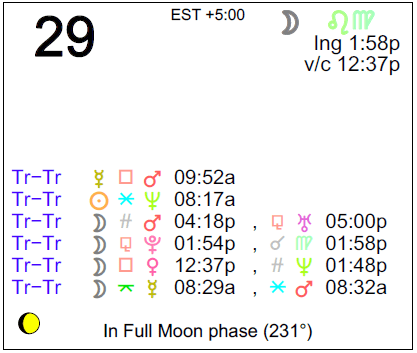 The following aspects (major only) and positions are at noon (EST) on December 29th: