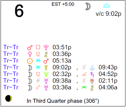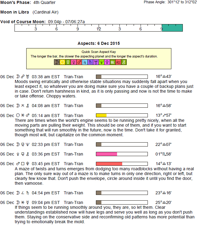 The following aspects (major only) and positions are at noon (EST) on December 6th: