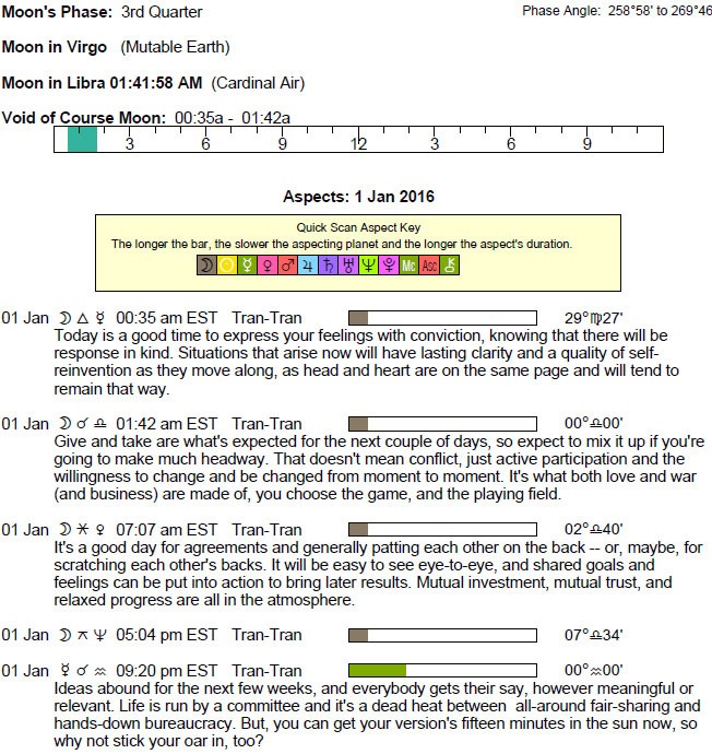 The following aspects (major only) and positions are at noon (EST) on January 1st: