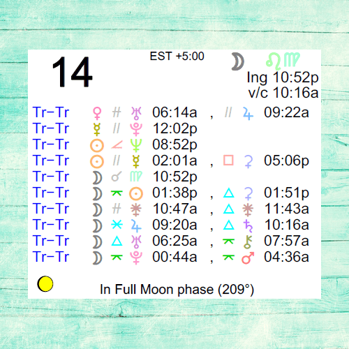 An auspicious time for any project demanding endurance or tolerance. Also good for establishing new habits and rituals.