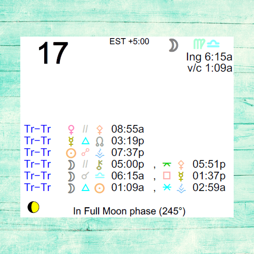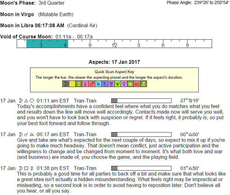 The following aspects (major only) and positions are at noon (EST) on January 17th: