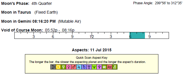 - The Moon is in Gemini from 8:16 PM forward (until Tuesday, July 14th, at 2:13 AM).