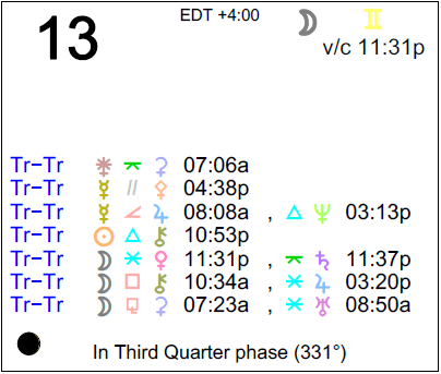 - The Moon is void from 11:31 PM forward (until tomorrow at 2:13 AM).