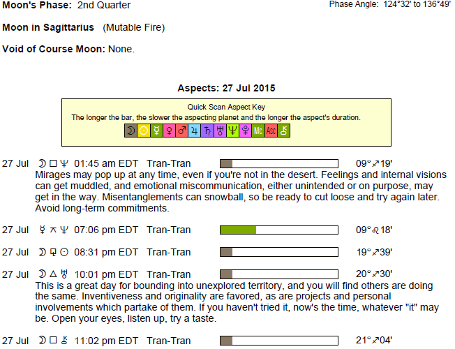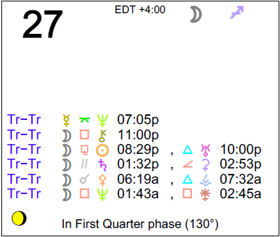 The following aspects (major only) and positions are at noon (EDT) on July 27th: