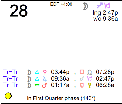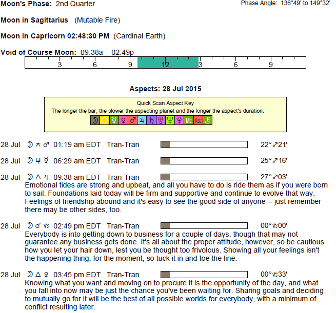 The following aspects (major only) and positions are at noon (EDT) on July 28th: