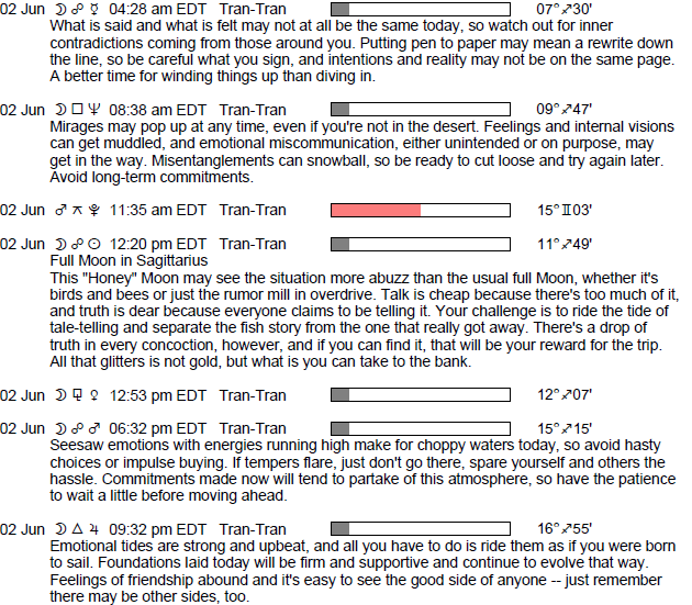 The following aspects (major only) and positions are at noon (EDT) on June 2nd: