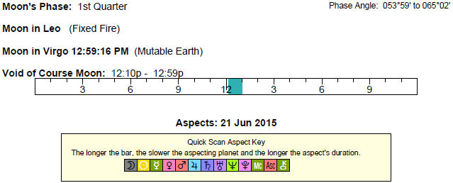 - The Moon is in Virgo from 12:58 PM forward (until Wednesday, June 24th, at 1:40 AM).