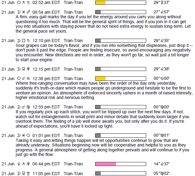 If you’re astrologically inclined and interested in the details of the Astrology of today, here are the factors considered in the forecasts: