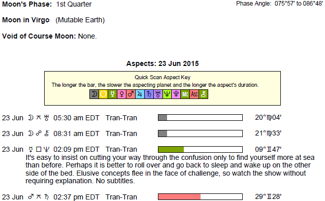 The following aspects (major only) and positions are at noon (EDT) on June 23rd: