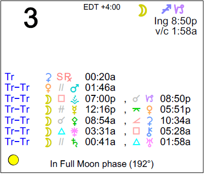 The following aspects (major only) and positions are at noon (EDT) on June 3rd:
