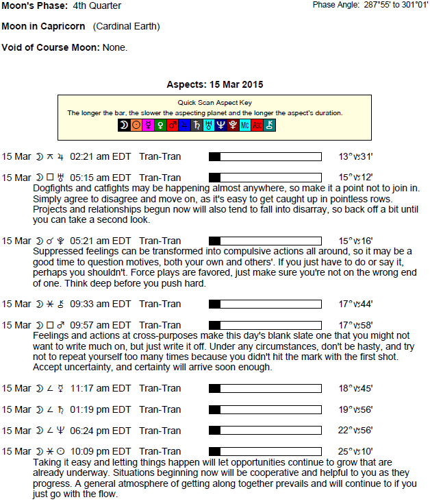 - The Moon is in Capricorn all day (until Monday, March 16th, at 6:13 AM).
