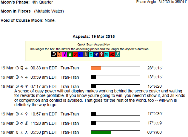 - A Solar Eclipse will occur on the morning of March 20th in the last degree of Pisces. The days before the eclipse are not ideal for major new beginnings and decisions.