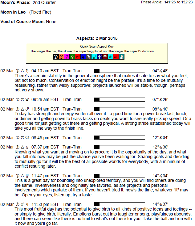 - The Moon is in Leo all day (until Wednesday, March 4th, at 6:57 AM).