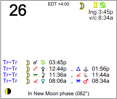 Description: Transiting Moon Entering Cancer