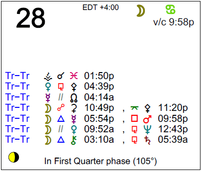 - The Moon is void from 9:58 PM (until tomorrow at 1:47 AM)
