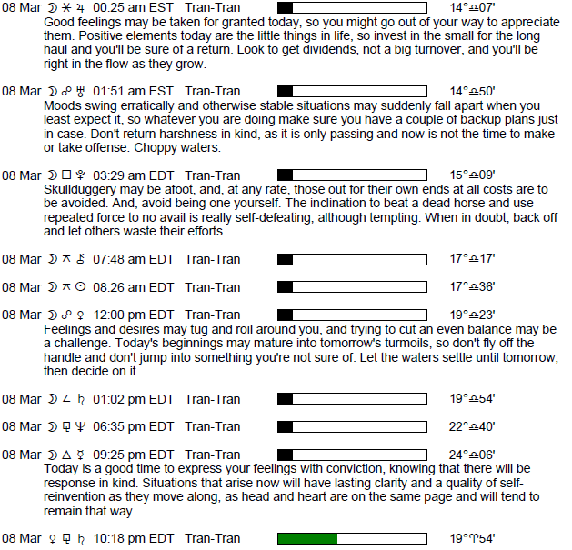 If you’re astrologically inclined and interested in the details of the Astrology of today, here are the factors considered in the forecasts: