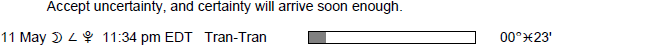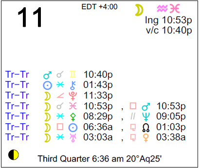 The following aspects (major only) and positions are at noon (EDT) on May 11th: