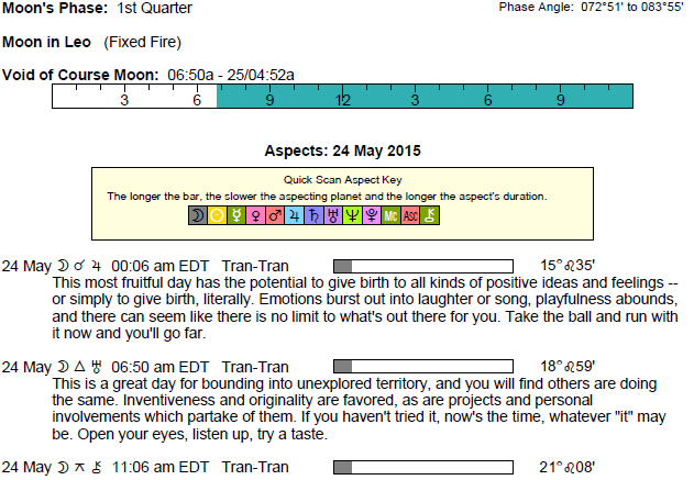 The following aspects (major only) and positions are at noon (EDT) on May 24th: