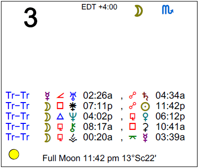 - A Full Moon occurs in the sign of Scorpio at 11:42 PM.