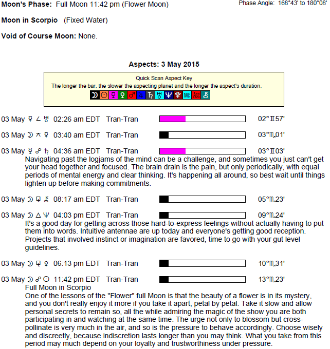 The following aspects (major only) and positions are at noon (EDT) on May 3rd: