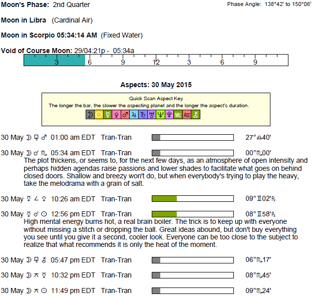 - The Moon is in Scorpio from 5:33 AM forward (until Monday, June 1st, at 2:39 PM).