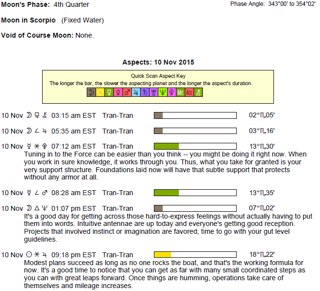 - The Moon is in Scorpio all day (until Thursday, November 12th, at 10:13 AM).