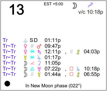 The following aspects (major only) and positions are at noon (EST) on November 13th: