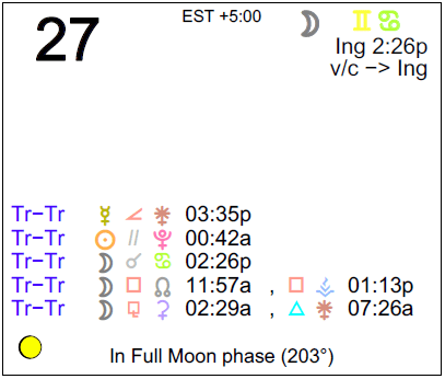 If you’re astrologically inclined and interested in the details of the Astrology of today, here are some of the factors considered in the forecasts (for the astrology of the week, see This Week in Astrology):
