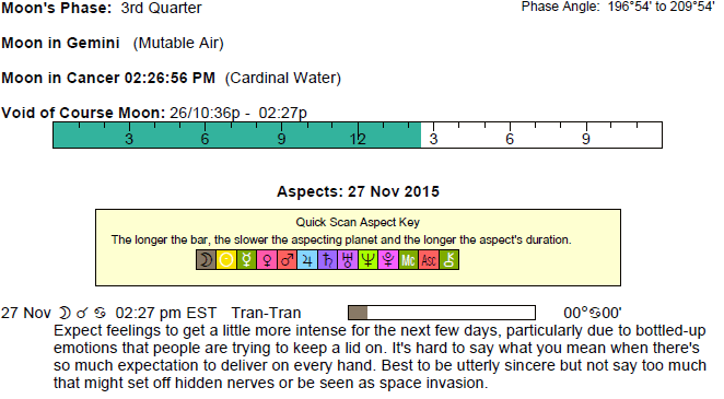 The following aspects (major only) and positions are at noon (EST) on November 27th: