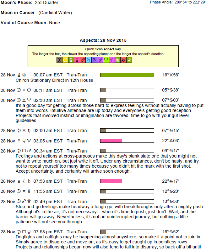 - The Moon is in Cancer all day (until Sunday, November 29th, at 7:47 PM).