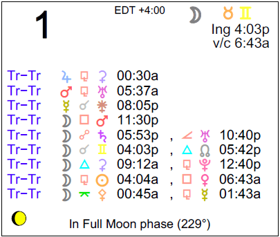 If you’re astrologically inclined and interested in the details of the Astrology of today, here are some of the factors considered in the forecasts (for the astrology of the week, see This Week in Astrology):