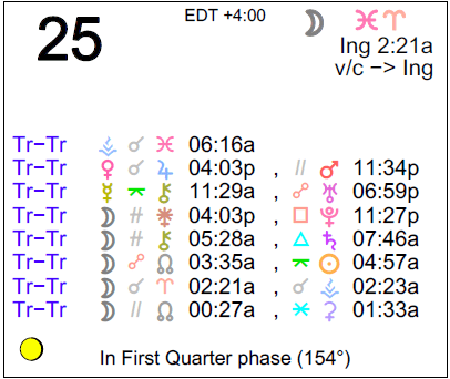 If you’re astrologically inclined and interested in the details of the Astrology of today, here are some of the factors considered in the forecasts (for the astrology of the week, see This Week in Astrology):