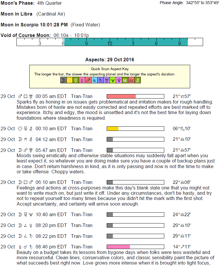 - The Moon is in Scorpio from 10:00 PM forward (until Tuesday, November 1st, at 10:42 AM).